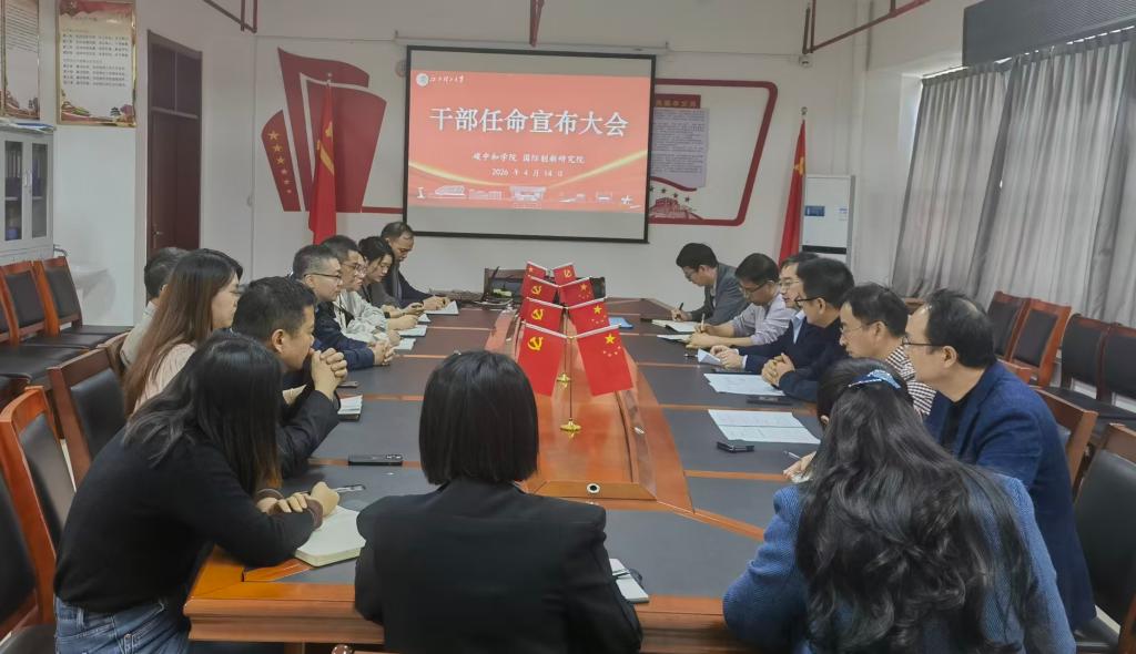 4月14日上午,国际创新研究院干部任命宣布大会在综合实验楼A1105会议室召开。校党委常委、副校长黄志繁,国际创新研究院兼碳中和学院院长帅词俊出席。国际创新研究院及碳中和学院全体科级及以上干部参加会议。会议由法学院党委副书记欧阳鹏主持。